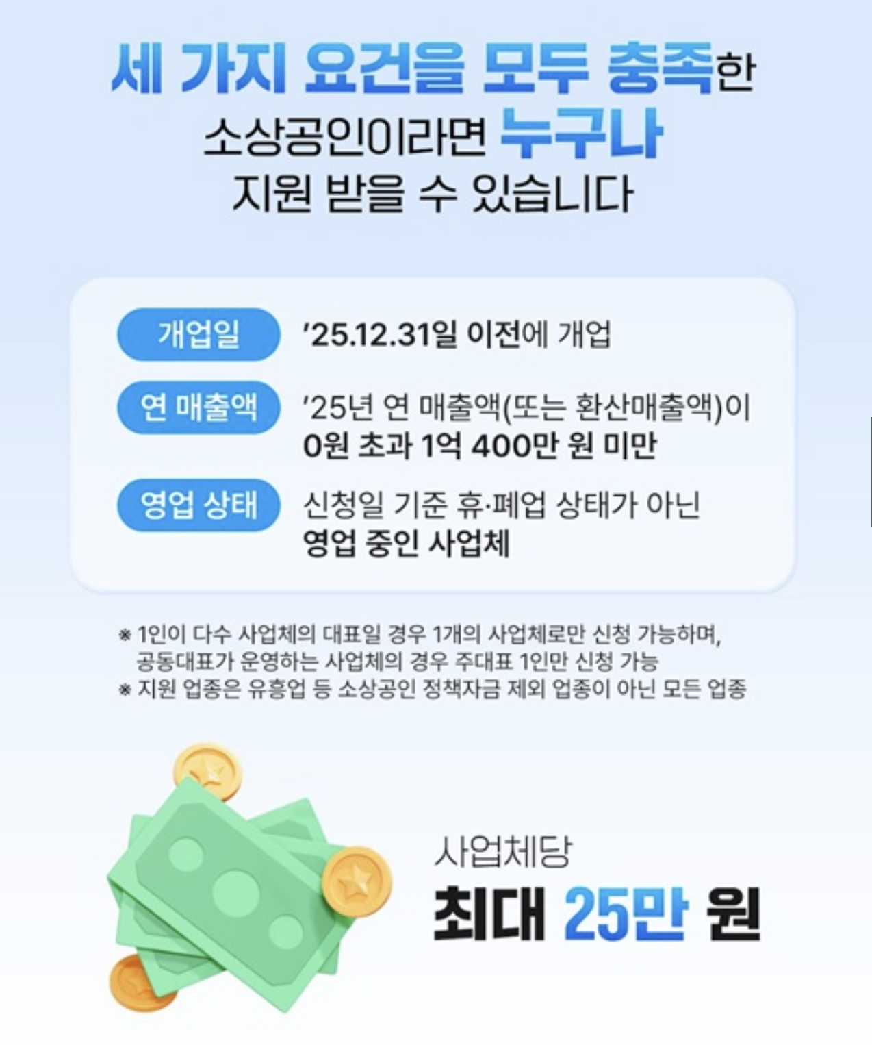 즉, 실제 영업 중인 일반 소상공인이라면 비교적 폭넓게 신청 가능한 구조로 설계되어 있습니다.