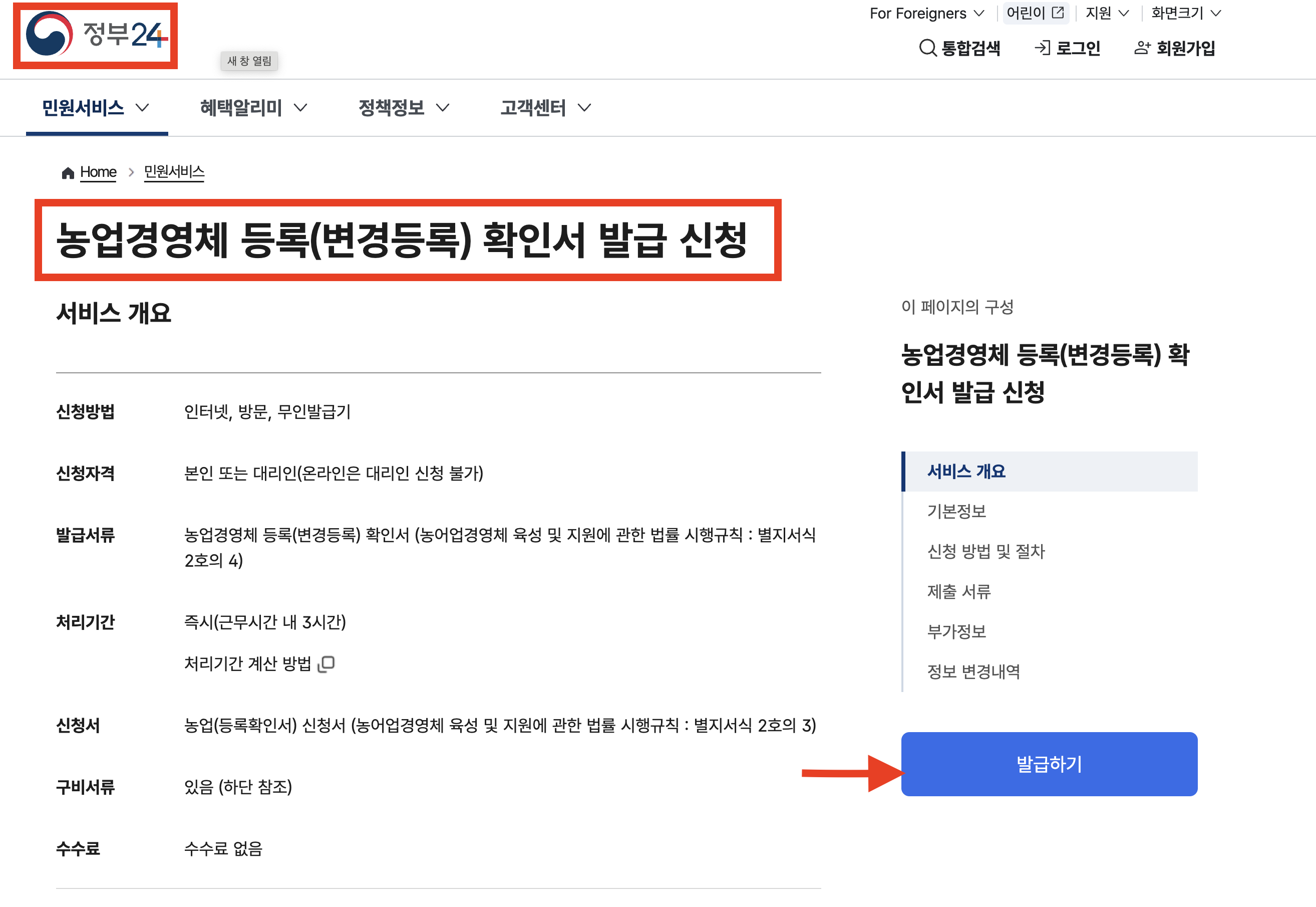 발급 신청 방법 및 절차