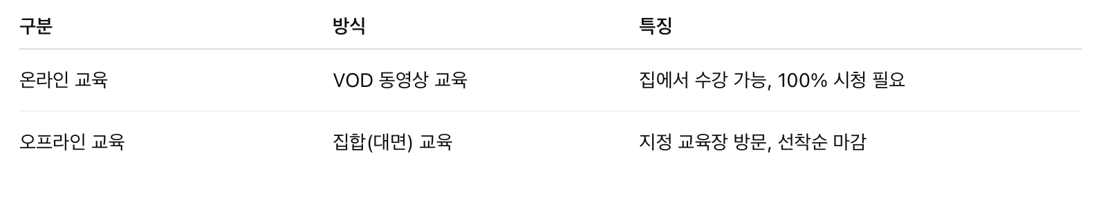 다만 집합교육은 온라인보다 예약 경쟁이 치열하고, 일정도 제한적이라는 특징이 있습니다.